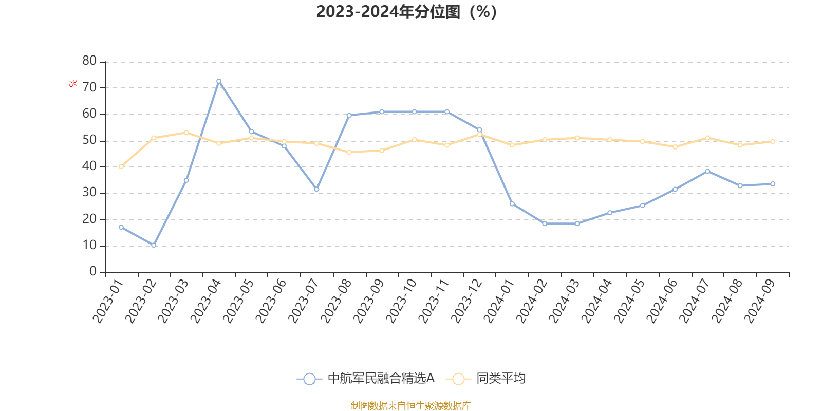 通过所选区间该基金净值增长率分位图,可以观察该基金与同类基金业绩比较情况。图为坐标原点到区间内某时点的净值增长率在同类基金中的分位数。